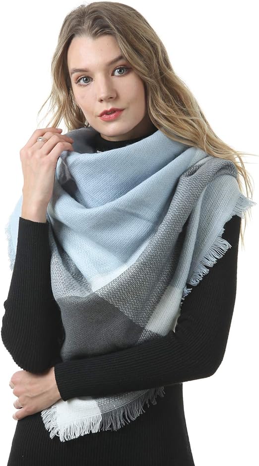 MAKFORT Schal Damen Herbst Winter Oversize Halstuch Damen Kariert Deckenschal Mit Fransen XXL Schals Damen Rosa Grau Blau 140 * 140CM